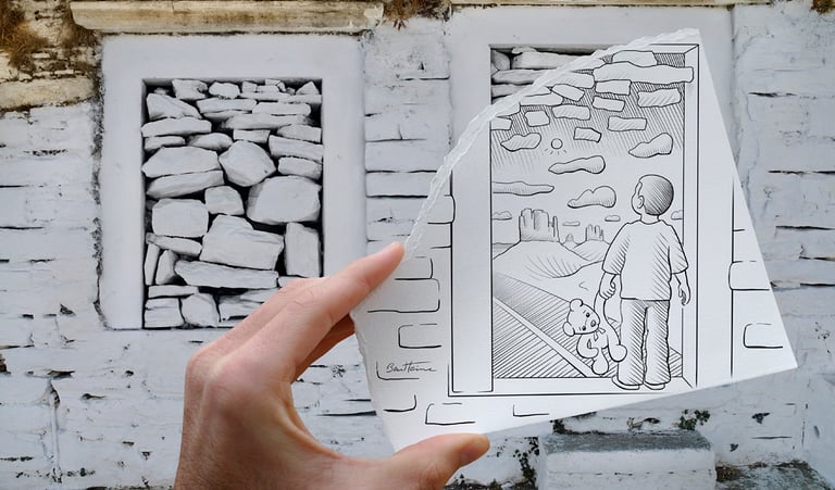 As an example, these photographs were taken during a Tour Photo stop at Pavillon M in Marseille. They feature Arthur Ueberschlag, a young emerging talent, alongside renowned visual artist Ben Heine, during a Pencil vs. Camera workshop—an artistic experience that merges photography and drawing to spark creativity and self-expression.
